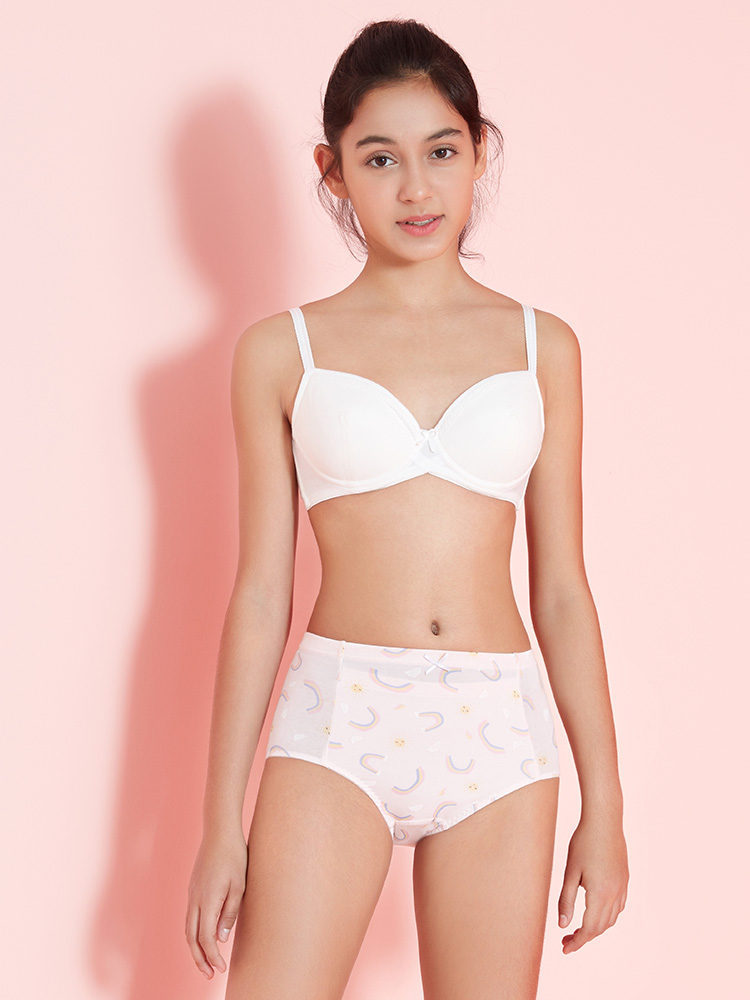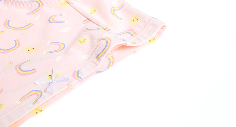 | 采用温和细腻的混纺面料,质地轻薄柔软,舒爽绵柔,装饰可爱彩虹印花,凸显少女的甜美可爱。 |
